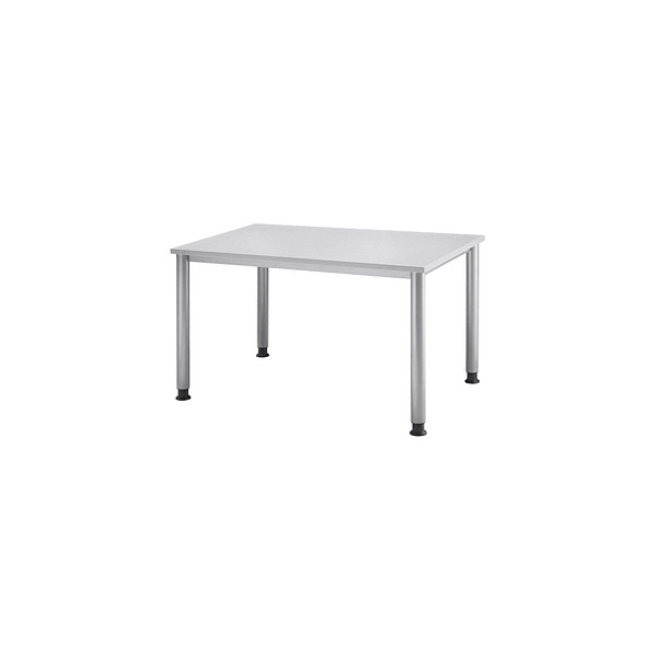 Hammerbacher Schreibtisch H-Serie, manuell höhenverstellbar, 68-81cm (H), 120x80cm (BxT), rechteckig, grau / silber