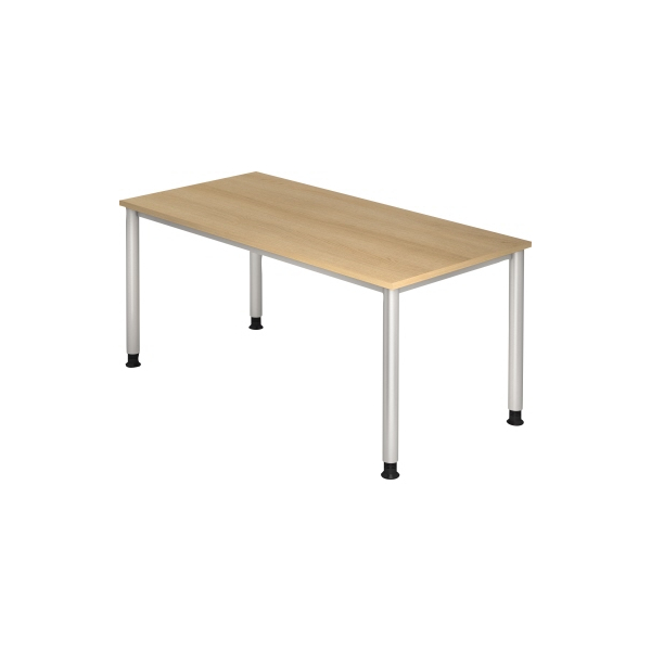 Hammerbacher Schreibtisch H-Serie, manuell höhenverstellbar, 68-81cm (H), 160x80cm (BxT), rechteckig, eiche / silber