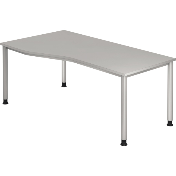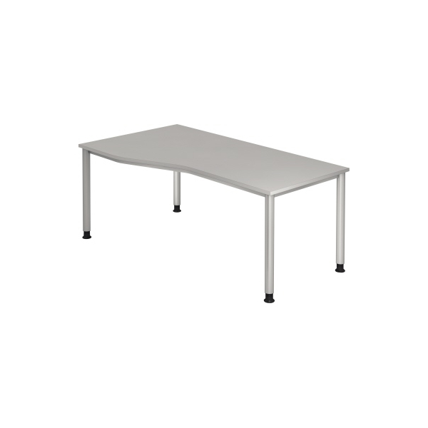 Hammerbacher Schreibtisch H-Serie, manuell höhenverstellbar, 68-81cm (H), 180x100cm (BxT), Freiform, grau / silber