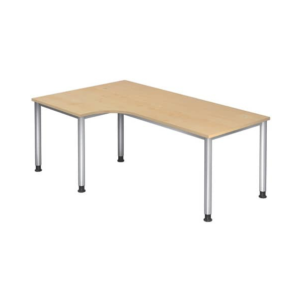 Hammerbacher Schreibtisch H-Serie, manuell höhenverstellbar, 68-76cm (H), 200x120cm (BxT), L-Form, ahorn / silber
