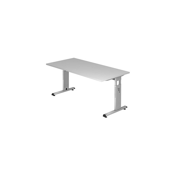 Jetzt Hammerbacher Schreibtisch O-Serie, manuell höhenverstellbar, 65-85cm (H), 160x80cm (BxT), rechteckig, grau / silber günstig kaufen.