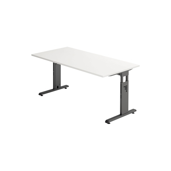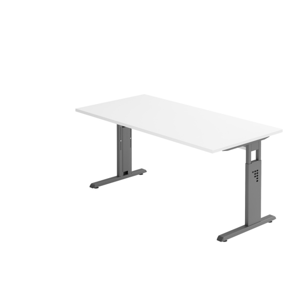 Hammerbacher Schreibtisch O-Serie, manuell höhenverstellbar, 65-85cm (H), 160x80cm (BxT), rechteckig, weiß / graphit