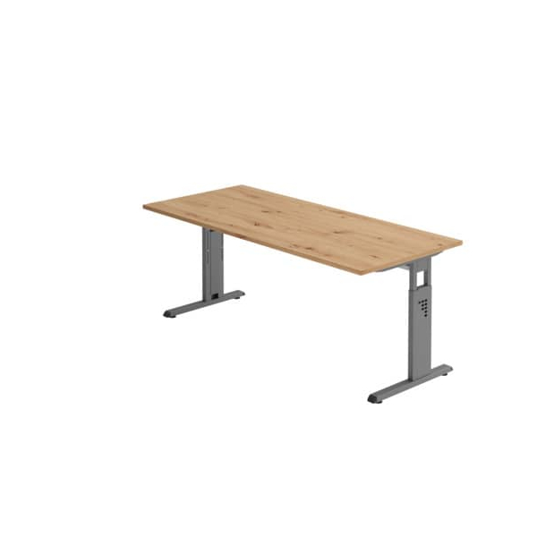 Hammerbacher Schreibtisch O-Serie, manuell höhenverstellbar, 65-85cm (H), 180x80cm (BxT), rechteckig, asteiche / graphit