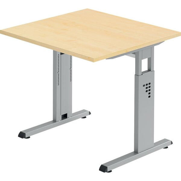 Hammerbacher Schreibtisch O-Serie, manuell höhenverstellbar, 65-85cm (H), 80x80cm (BxT), quadratisch, ahorn / silber
