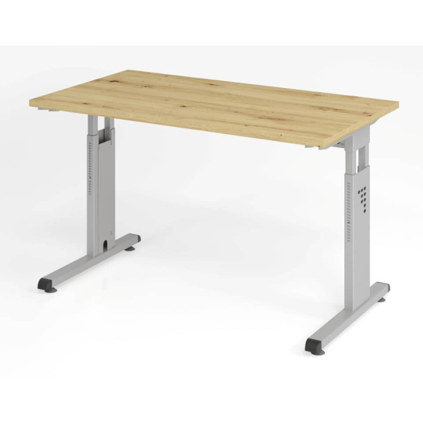 Hammerbacher Schreibtisch O-Serie mini, manuell höhenverstellbar, 65-85cm (H), 120x67cm (BxT), rechteckig, asteiche / silber