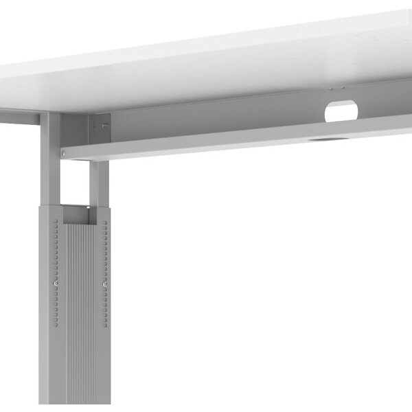 Die manuelle Höhenverstellung von 65 bis 85 cm ermöglicht es Ihnen, die optimale Arbeitshöhe individuell anzupassen. Dies geschieht durch ein einfaches, mechanisches Raster von 1 cm, das Ihnen Flexibilität bei der Nutzung des Schreibtisches bietet. Die Tischplatte hat eine Stärke von 25 mm und ist mit einer 2 mm dicken ABS-Kante gerundet, was nicht nur für eine ansprechende Optik sorgt, sondern auch die Langlebigkeit des Produkts unterstützt.