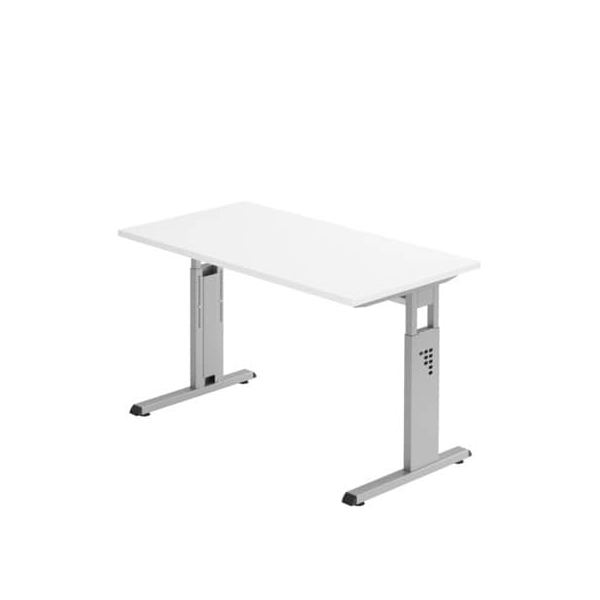 Hammerbacher Schreibtisch O-Serie mini, manuell höhenverstellbar, 65-85cm (H), 120x67cm (BxT), rechteckig, weiß / silber