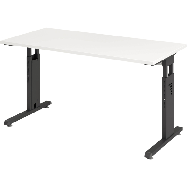 manuell höhenverstellbarer Schreibtisch Hammerbacher O-Serie mini VOS614/W/G • Höhe: 65-85cm • Platte: weiß, 140x67cm (BxT), rechteckig, Spanplatte mit Melaminharzbeschichtung, 25mm • Gestell: graphit, C-Fuß-Gestell, Stahl, pulverbeschichtet • ohne Rollen • Gewicht: 30,8kg • Anlieferung: zerlegt