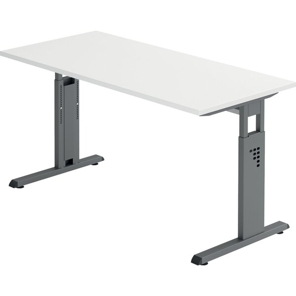 Jetzt Hammerbacher Schreibtisch O-Serie mini, manuell höhenverstellbar, 65-85cm (H), 140x67cm (BxT), rechteckig, weiß / graphit günstig kaufen.