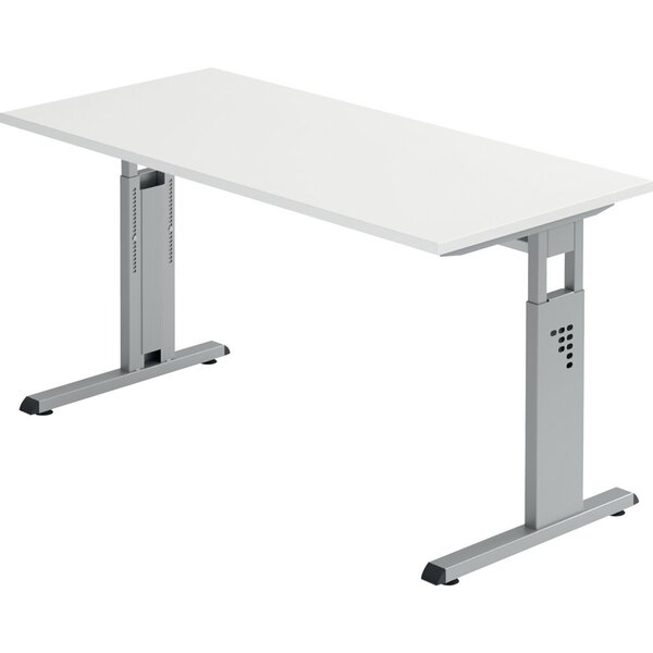 Hammerbacher Schreibtisch O-Serie mini, manuell höhenverstellbar, 65-85cm (H), 140x67cm (BxT), rechteckig, weiß / silber