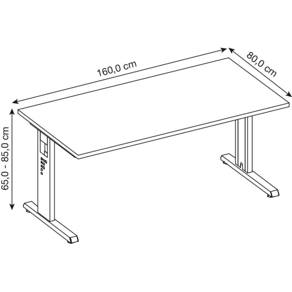Die kompakte rechteckige Form des Schreibtisches misst 160x80 cm (BxT) und bietet ausreichend Fläche für Ihren Computer, Unterlagen und weiteres Büromaterial. Zudem verfügt der Schreibtisch über eine horizontale Kabelwanne mit einem Querschnitt von 9 cm sowie eine vertikale Kabelführung im Fuß, die für Ordnung sorgt.