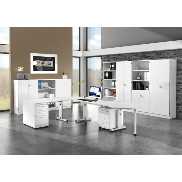 Entdecken Sie den Schreibtisch OS 16 von Hammerbacher, ein stilvolles und praktisches Möbelstück, das in jedem Büro eine gute Figur macht. Mit einer Größe von 160 x 80 cm bietet dieser Schreibtisch genügend Platz für Ihre Unterlagen und technische Geräte. Die in elegantem Weiß ausgeführte Tischplatte hat eine Stärke von 25 mm und ist mit einer 2 mm dicken ABS-Kante ausgestattet, die für zusätzliche Stabilität sorgt.