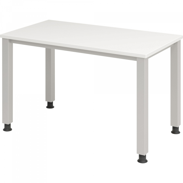 Hammerbacher Schreibtisch Q-Serie, manuell höhenverstellbar, 68-83,5cm (H), 120x67,2cm (BxT), rechteckig, weiß / silber
