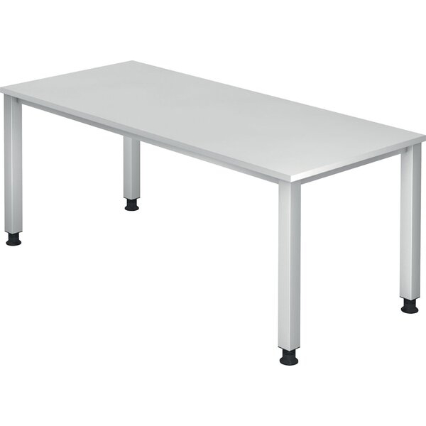 Hammerbacher Schreibtisch Q-Serie, manuell höhenverstellbar, 68-83,5cm (H), 180x80cm (BxT), rechteckig, weiß / silber