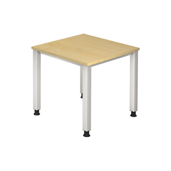 Schreibtisch Q-Serie, manuell höhenverstellbar, 68-83,5cm (H), 80x80cm (BxT), quadratisch, ahorn / silber