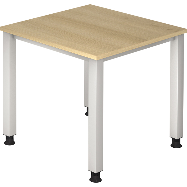 Schreibtisch Q-Serie, manuell höhenverstellbar, 68-83,5cm (H), 80x80cm (BxT), quadratisch, eiche / silber