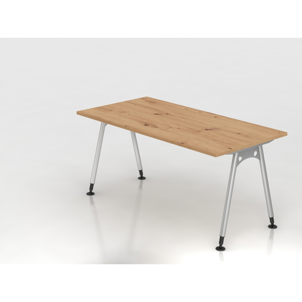 Hammerbacher Schreibtisch VAS, manuell höhenverstellbar, 76cm (H), 160x80cm (BxT), asteiche / silber