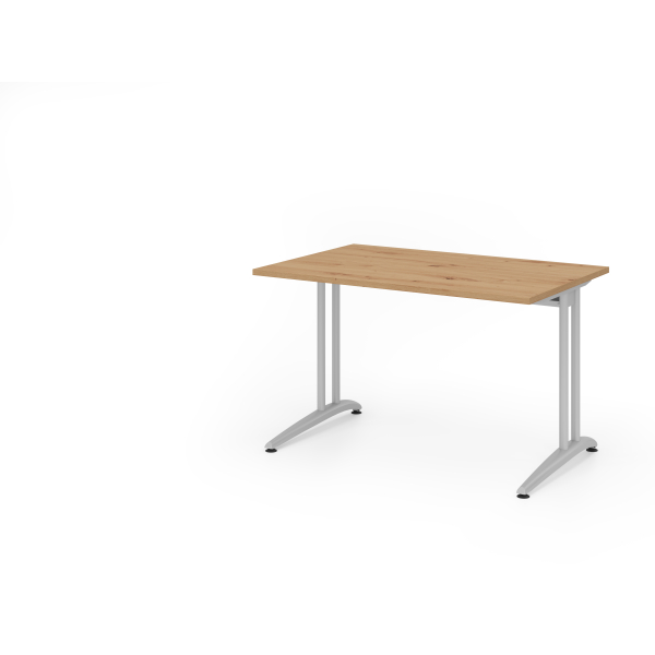 Schreibtisch Hammerbacher VBS VBS12/R/S • Höhe: 74cm • Platte: asteiche, 120x80cm (BxT), verkettbar, 25mm • Gestell: silber, C-Fuß-Gestell • Gewicht: 25,55kg
