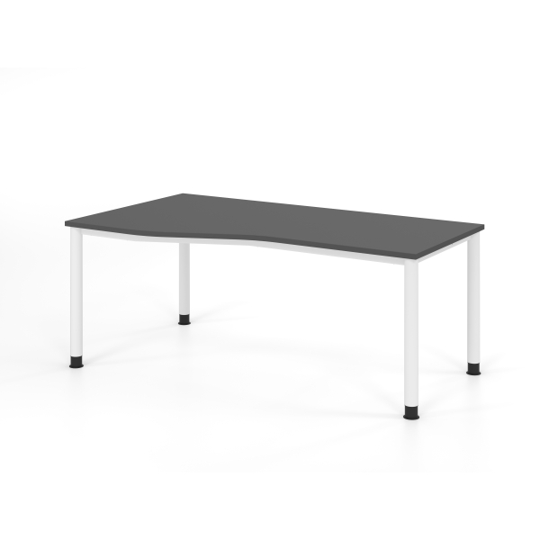Entdecken Sie den **Schreibtisch** der Serie **VHS** von Hammerbacher, der sich durch seine manuelle Höhenverstellbarkeit und großzügigen Abmessungen von 180 x 100 cm auszeichnet. Die elegante Kombination aus graphitfarbenem Tischplattenmaterial und einem weißen 4-Fuß-Gestell verleiht Ihrem Arbeitsplatz eine moderne und stilvolle Note.