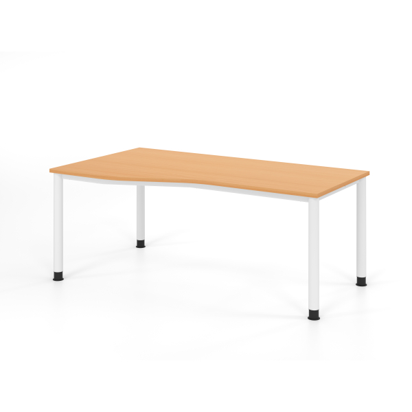 Die Tischplatte aus Buche mit einer Stärke von 25 mm und einer 2 mm dicken ABS-Kante sorgt für eine hohe Stabilität und Langlebigkeit. Das moderne 4-Fuß-Gestell in Weiß gibt dem Schreibtisch eine ansprechende Optik und passt perfekt in jedes Büroambiente.
