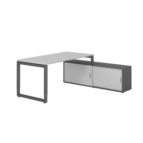 Das Sideboard ist mit 2 Schiebetüren ausgestattet und bietet zusätzlichen Stauraum für Ihre Unterlagen und Büromaterialien. Der Tisch kann problemlos mit der beiliegenden Kufe als separates Einzelmöbel verwendet werden, was Ihnen Flexibilität in Ihrem Büroeinrichtungsstil ermöglicht. Die Montage ist denkbar einfach und ermöglicht Ihnen eine schnelle Inbetriebnahme.