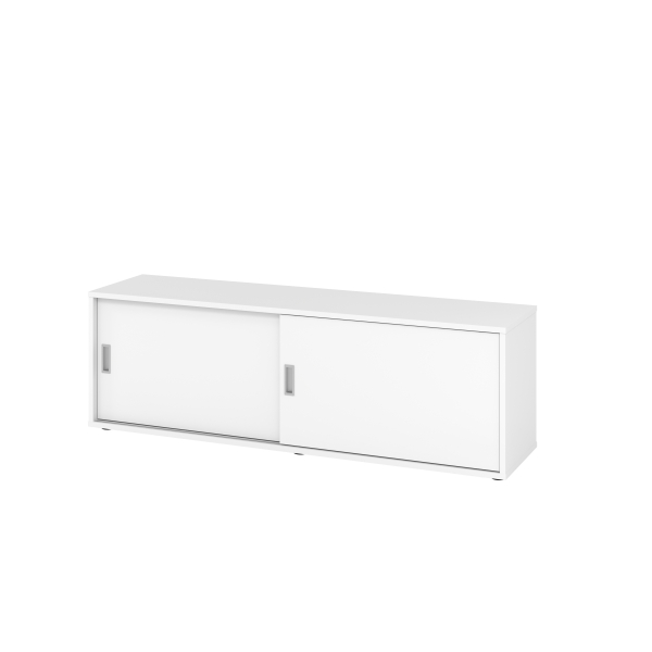 Das Sideboard misst 160x40x52 cm (BxTxH) und ist mit einer Sichtrückwand von 8 mm ausgestattet. Die beiden Schiebetüren sind aus 16 mm starkem Material gefertigt und mit einem praktischen Muschelgriff versehen. Die zwei verstellbaren Fachböden und die Mittelwand ermöglichen eine flexible Nutzung, während die links oder rechts verwendbare Konstruktion sich ideal zur Anpassung an Ihren Raum eignet.