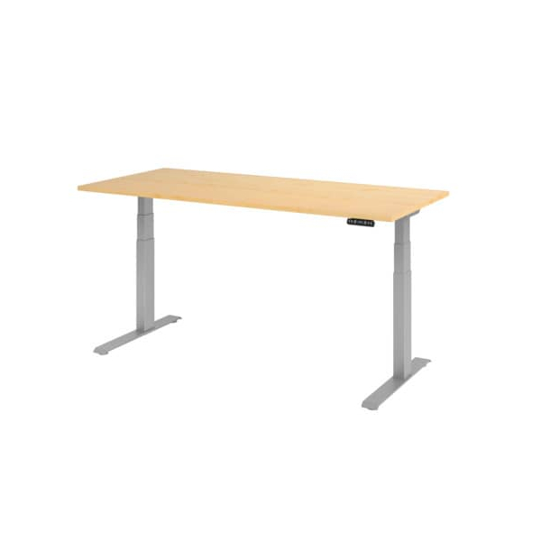 Hammerbacher Sitz-Steh-Schreibtisch Basic, elektrisch höhenverstellbar, 63-127cm (H), 180x80cm (BxT), rechteckig, ahorn / silber