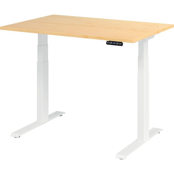 Hammerbacher Sitz-Steh-Schreibtisch Basic, elektrisch höhenverstellbar, 64-129cm (H), 120x80cm (BxT), rechteckig, ahorn / weiß