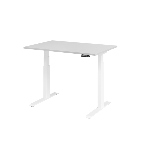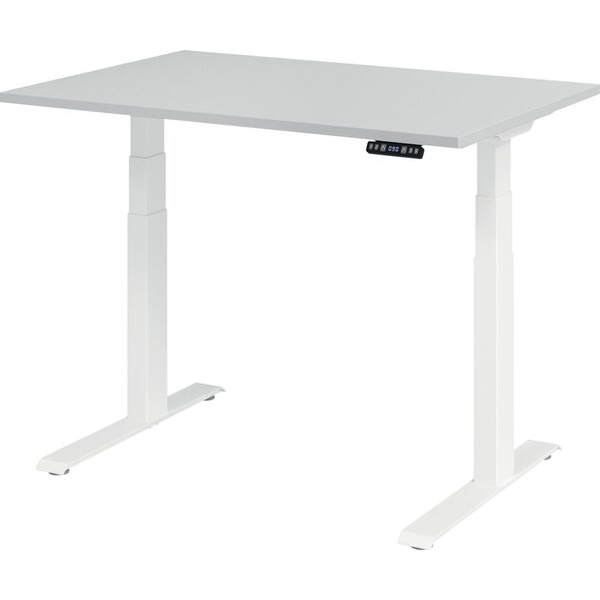 Hammerbacher Sitz-Steh-Schreibtisch Basic, elektrisch höhenverstellbar, 64-129cm (H), 120x80cm (BxT), rechteckig, grau / weiß