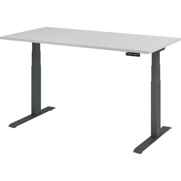 Hammerbacher Sitz-Steh-Schreibtisch Basic, elektrisch höhenverstellbar, 64-129cm (H), 160x80cm (BxT), rechteckig, grau / graphit
