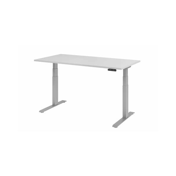 Hammerbacher Sitz-Steh-Schreibtisch Basic, elektrisch höhenverstellbar, 64-129cm (H), 160x80cm (BxT), rechteckig, grau / silber