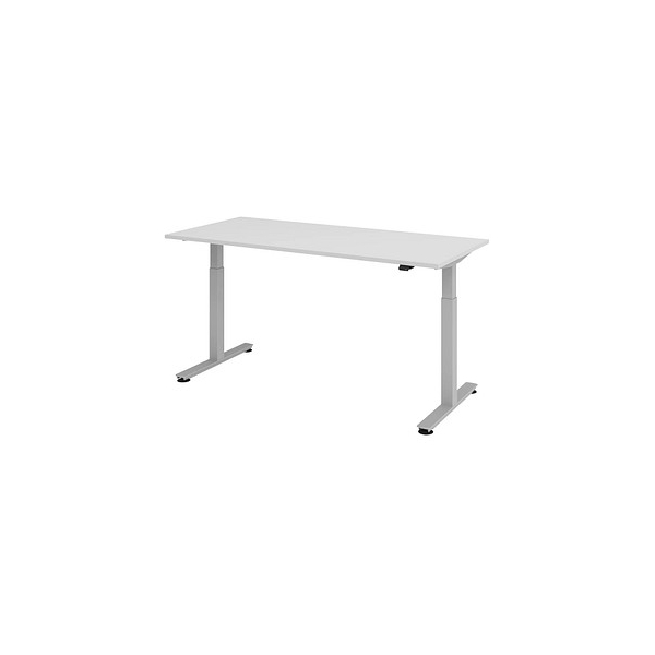 Jetzt Hammerbacher Sitz-Steh-Schreibtisch XMST, elektrisch höhenverstellbar, 71-120cm (H), 180x80cm (BxT), rechteckig, grau / silber günstig kaufen.