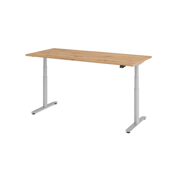 Hammerbacher Sitz-Steh-Schreibtisch VXDLR, elektrisch höhenverstellbar, 127cm (H), 180x80cm (BxT), rechteckig, asteiche / silber