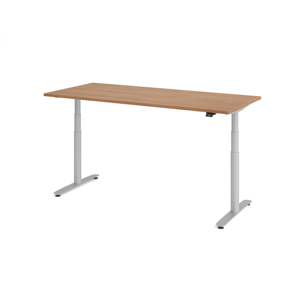 Hammerbacher Sitz-Steh-Schreibtisch VXDLR, elektrisch höhenverstellbar, 127cm (H), 180x80cm (BxT), rechteckig, nussbaum / silber