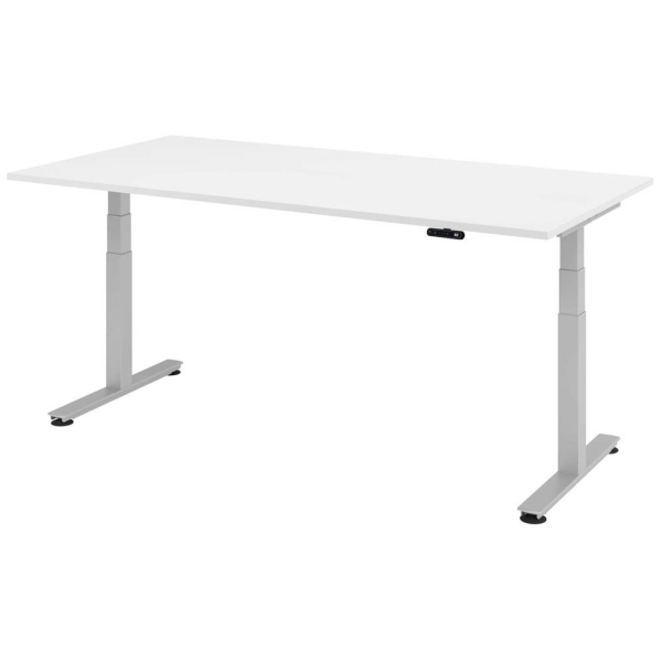 Hammerbacher Sitz-Steh-Schreibtisch VXDSM, elektrisch höhenverstellbar, 63,5-128,5cm (H), 200x100cm (BxT), rechteckig, weiß / silber