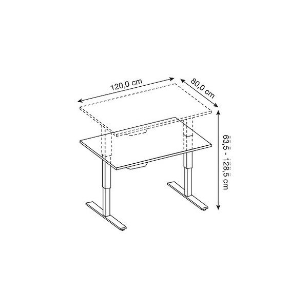 Mit einem großzügigen Maß von 120 cm in der Breite und 80 cm in der Tiefe bietet dieser Tisch ausreichend Platz für Ihre Arbeitsutensilien. Die stabile Konstruktion mit einem T-Fuß-Gestell aus Stahl garantiert dabei eine Tragfähigkeit von bis zu 120 kg und sorgt für eine sichere Nutzung.