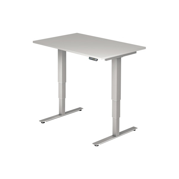 Hammerbacher Sitz-Steh-Schreibtisch XDSM, elektrisch höhenverstellbar, 63-127cm (H), 120x80cm (BxT), rechteckig, grau / silber