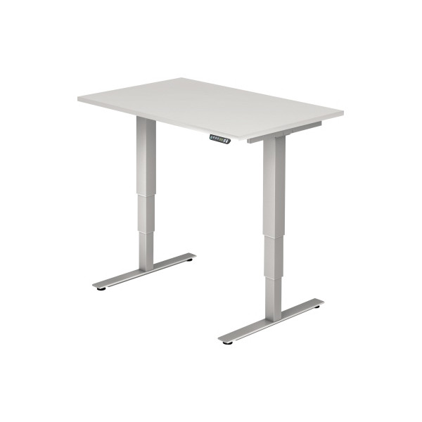 Hammerbacher Sitz-Steh-Schreibtisch XDSM, elektrisch höhenverstellbar, 63-127cm (H), 120x80cm (BxT), rechteckig, weiß / silber