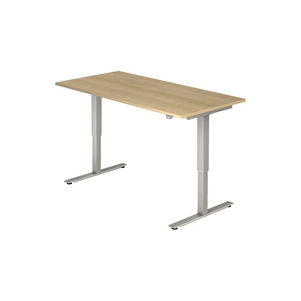 Hammerbacher Sitz-Steh-Schreibtisch XDSM, elektrisch höhenverstellbar, 63-127cm (H), 160x80cm (BxT), rechteckig, eiche / silber