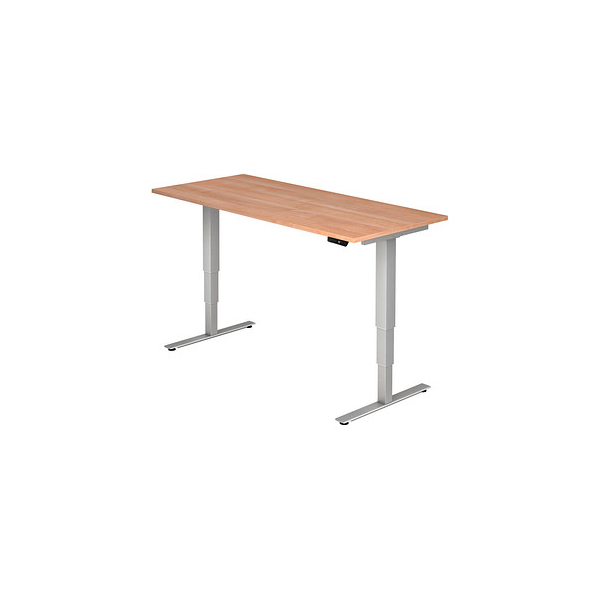 elektrisch höhenverstellbarer Sitz-Steh-Schreibtisch Hammerbacher XDSM VXDSM19/N/S • für ergonomisches Arbeiten • Höhe: 63-127cm • Platte: nussbaum, 180x80cm (BxT), rechteckig, Spanplatte mit Melaminharzbeschichtung, 25mm • Gestell: silber, T-Fuß-Gestell, Stahl • ohne Rollen • Tragfähigkeit: bis 120kg • Gewicht: 60,9kg • Anlieferung: zerlegt
