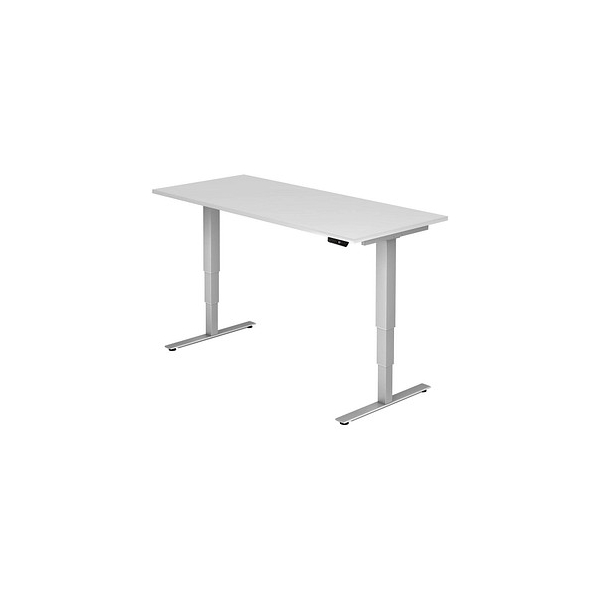 Hammerbacher Sitz-Steh-Schreibtisch XDSM, elektrisch höhenverstellbar, 63-127cm (H), 180x80cm (BxT), rechteckig, weiß / silber