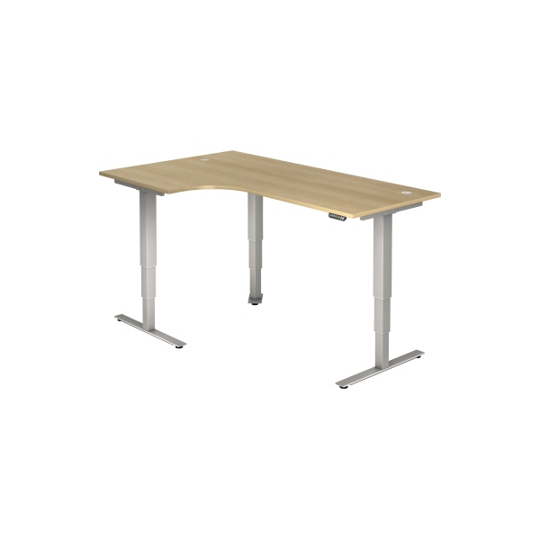 Hammerbacher Sitz-Steh-Schreibtisch XDSM, elektrisch höhenverstellbar, 63-127cm (H), 200x120cm (BxT), L-Form, eiche / silber