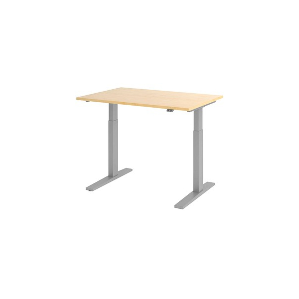 Hammerbacher Sitz-Steh-Schreibtisch XMKA, elektrisch höhenverstellbar, 70-120cm (H), 120x80cm (BxT), rechteckig, ahorn / silber