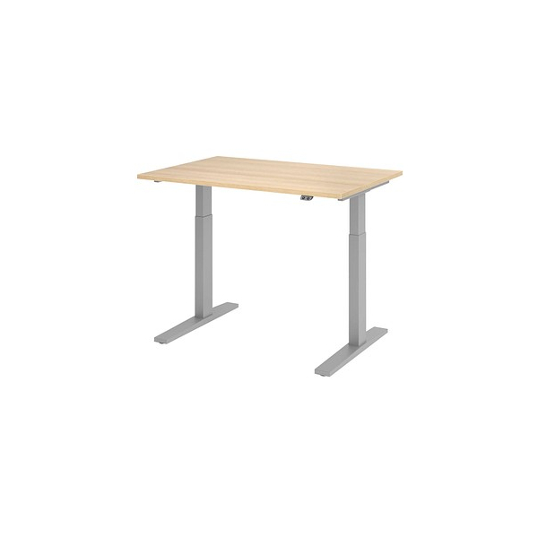 Jetzt Hammerbacher Sitz-Steh-Schreibtisch XMKA, elektrisch höhenverstellbar, 70-120cm (H), 120x80cm (BxT), rechteckig, eiche / silber günstig kaufen.
