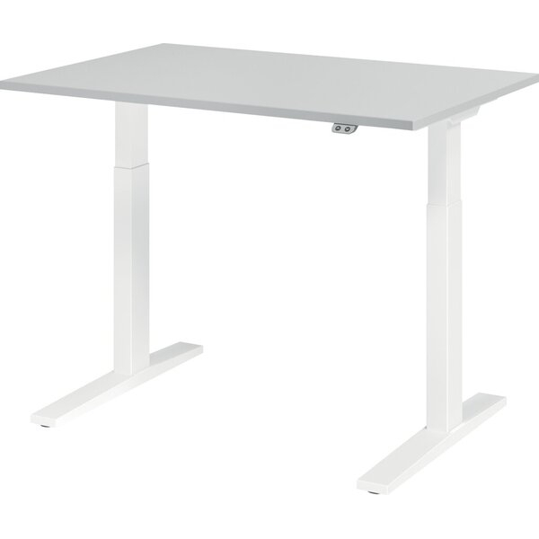 Hammerbacher Sitz-Steh-Schreibtisch XMKA, elektrisch höhenverstellbar, 70-120cm (H), 120x80cm (BxT), rechteckig, grau / weiß