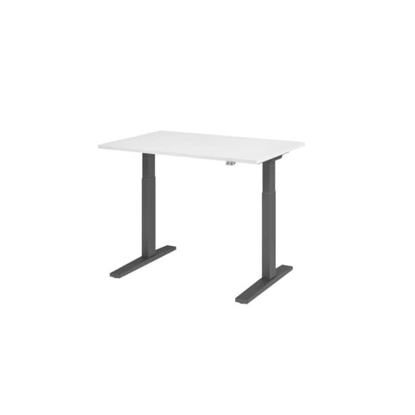 Hammerbacher Sitz-Steh-Schreibtisch XMKA, elektrisch höhenverstellbar, 70-120cm (H), 120x80cm (BxT), rechteckig, weiß / graphit
