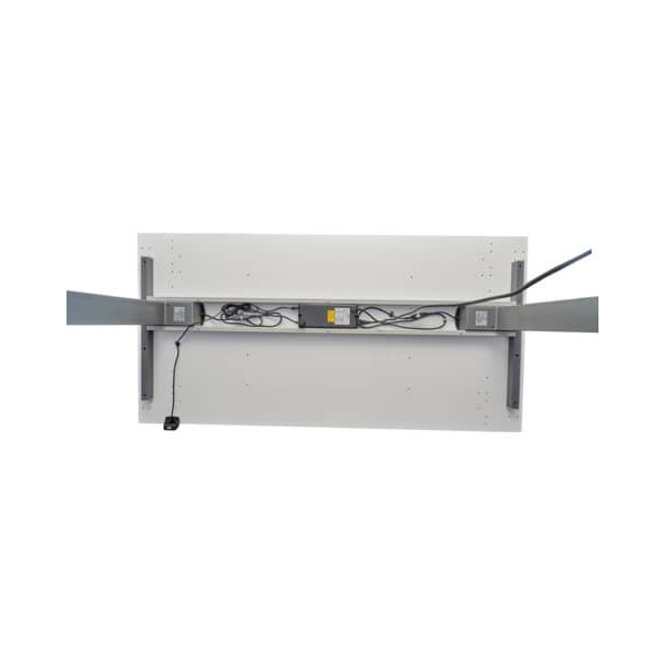 Der Schreibtisch ist elektrisch stufenlos höhenverstellbar und wird über einen praktischen Tast-Schalter bedient, der sowohl links als auch rechts unter der Tischplatte montierbar ist. Die sanfte Anlauf- und Stopp-Funktion mit Auffahrschutz sorgt für ein sicheres Arbeiten.