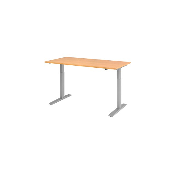 Hammerbacher Sitz-Steh-Schreibtisch XMKA, elektrisch höhenverstellbar, 70-120cm (H), 160x80cm (BxT), rechteckig, buche / silber