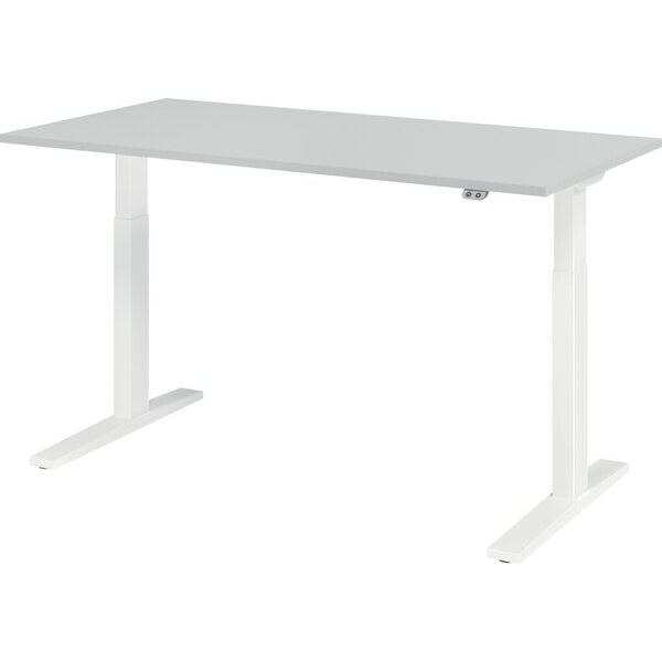 Hammerbacher Sitz-Steh-Schreibtisch XMKA, elektrisch höhenverstellbar, 70-120cm (H), 160x80cm (BxT), rechteckig, grau / weiß