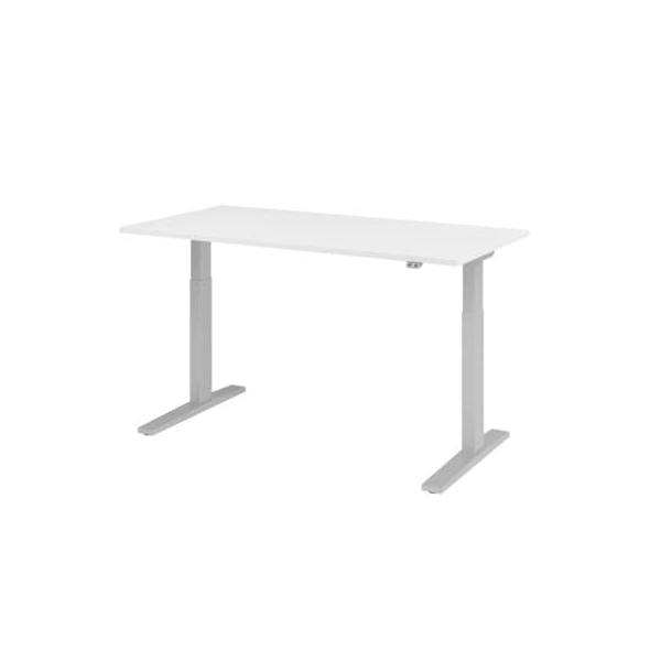 Hammerbacher Sitz-Steh-Schreibtisch XMKA, elektrisch höhenverstellbar, 70-120cm (H), 160x80cm (BxT), rechteckig, weiß / silber